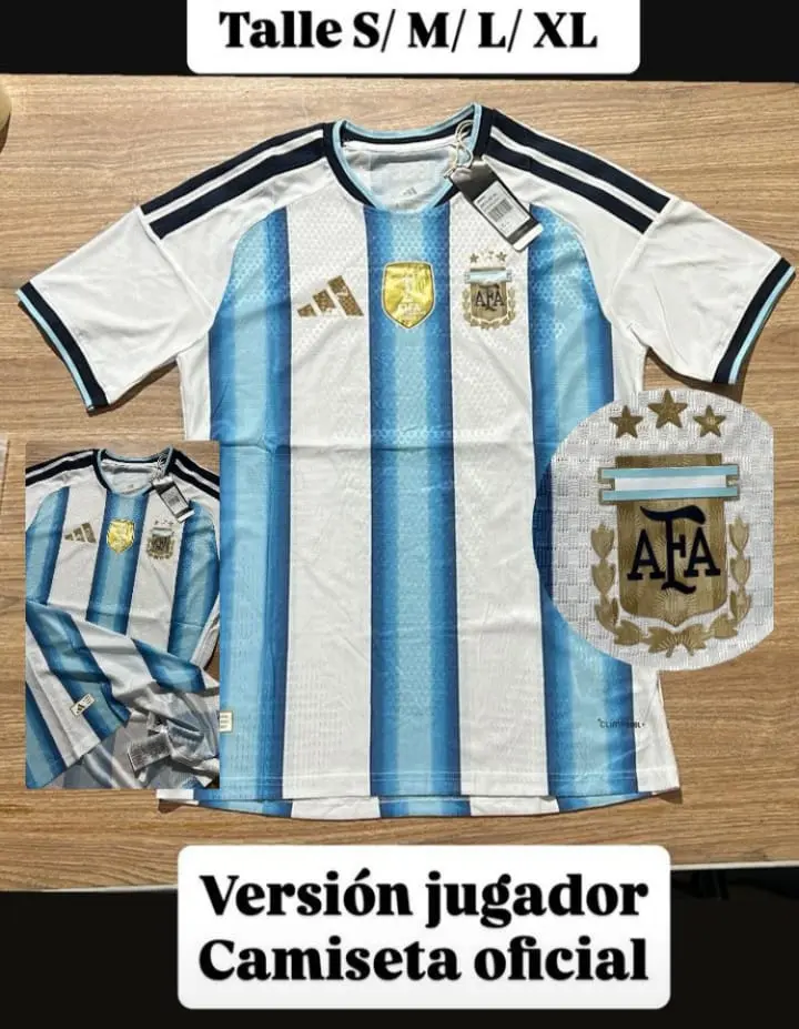 La camiseta de Argentina es celeste y blanca a bastones verticales, con un diseño moderno que incorpora tres tonos de celeste en degradé, representando sus tres Copas del Mundo (1978, 1986, 2022). Incluye las tres estrellas bordadas con sus años y un detalle especial en la nuca con el año de fundación de la AFA (1893). La tecnología Climacool y detalles en azul marino completan su diseño, que homenajea el legado de los campeones.